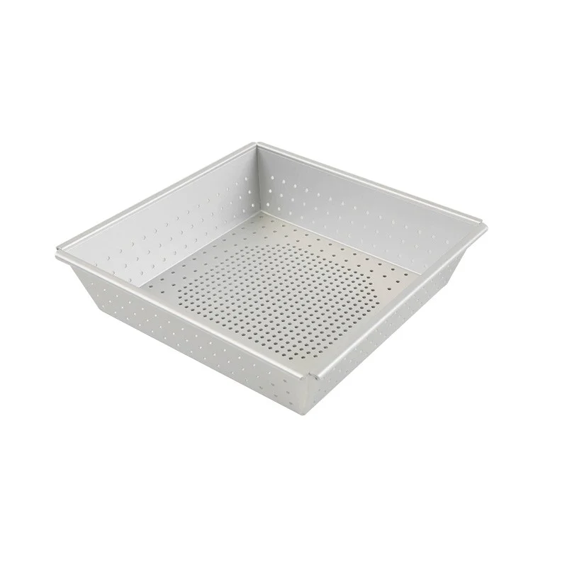 - Anodisé perforé : surface anodisée avec des perforations de précision pour une meilleure circulation de l'air, favorisant une croûte inférieure extra croustillante.