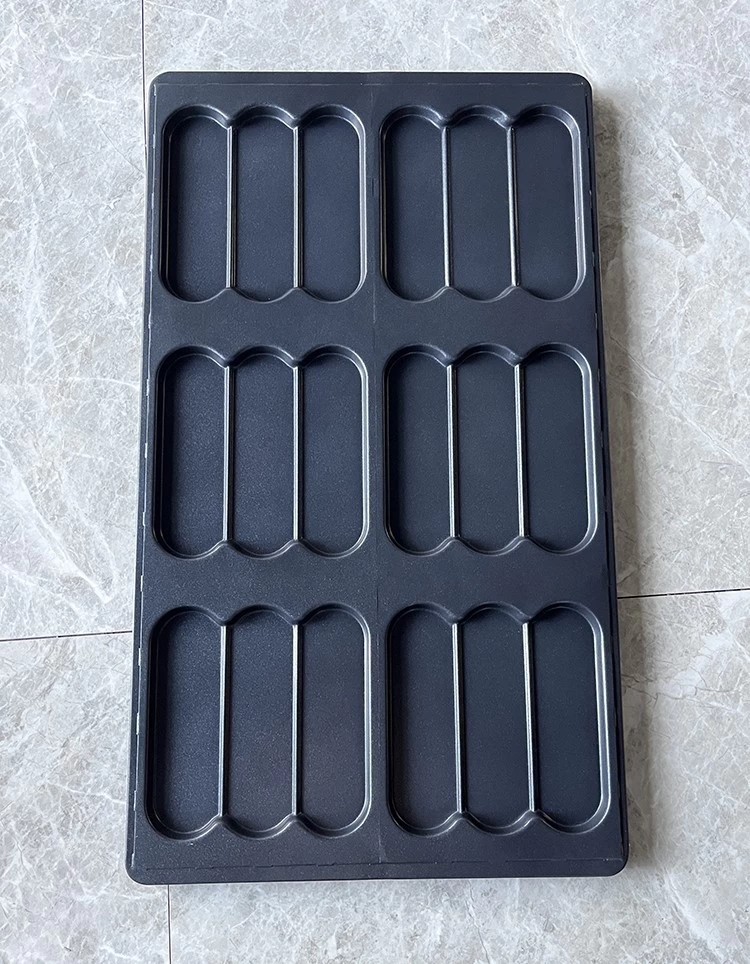 - Function: baking tray with 18 oval molds for hot dog bun bread, oval bread etc in bakery, restaurant, food factory