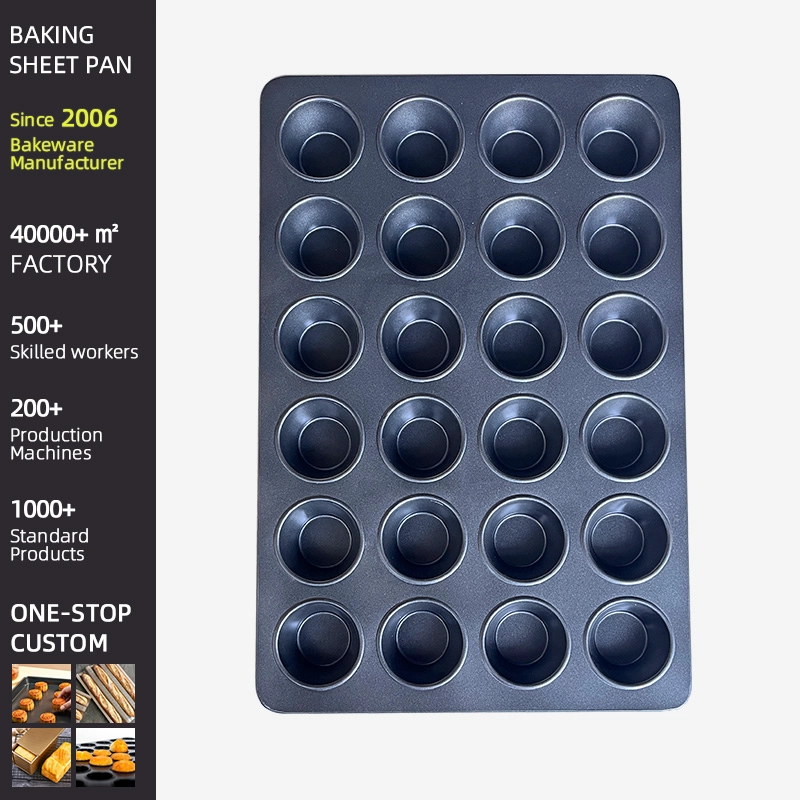 Heavy Duty Aluminized Steel Non Stick 24-Cavity Round Cupcake Pan Round Muffin Cake Baking Tray