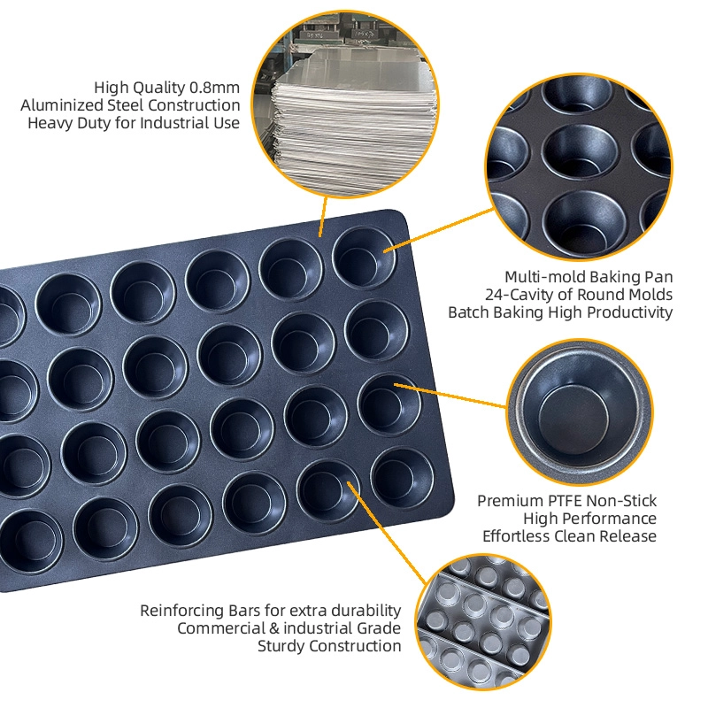 2. 24-Cavity Round Baking Mold: Designed for efficient, high-volume production of cupcakes and muffins with consistent shape and size.
