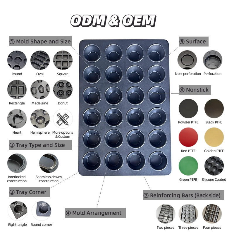 5. Expertise Manufacturer Customization: Tsingbuy commercial cupcake pan manufacturer in China offers tailored customization services to meet specific production requirements, including cavity design, branding, and dimensions.