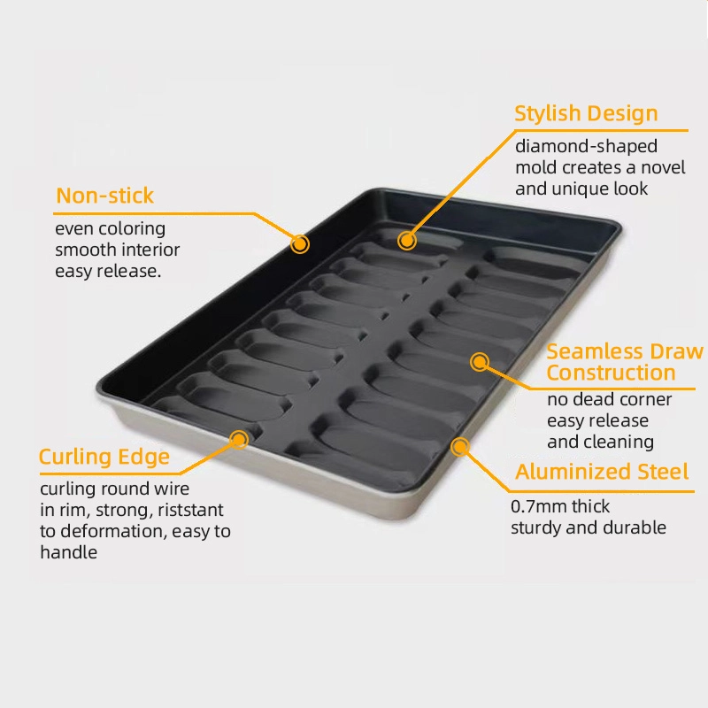 Полностью настраиваемые размеры: Цинбай Фабрика по производству булочек для хот-догов в Китае обеспечивает настраиваемые размеры внешних лотков и форм для удовлетворения конкретных требований OEM, что позволяет пекарням и производителям продуктов питания оптимизировать подгонку лотков для своих конкретных печей и производственных линий.
